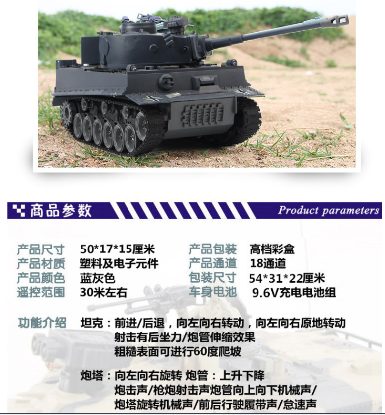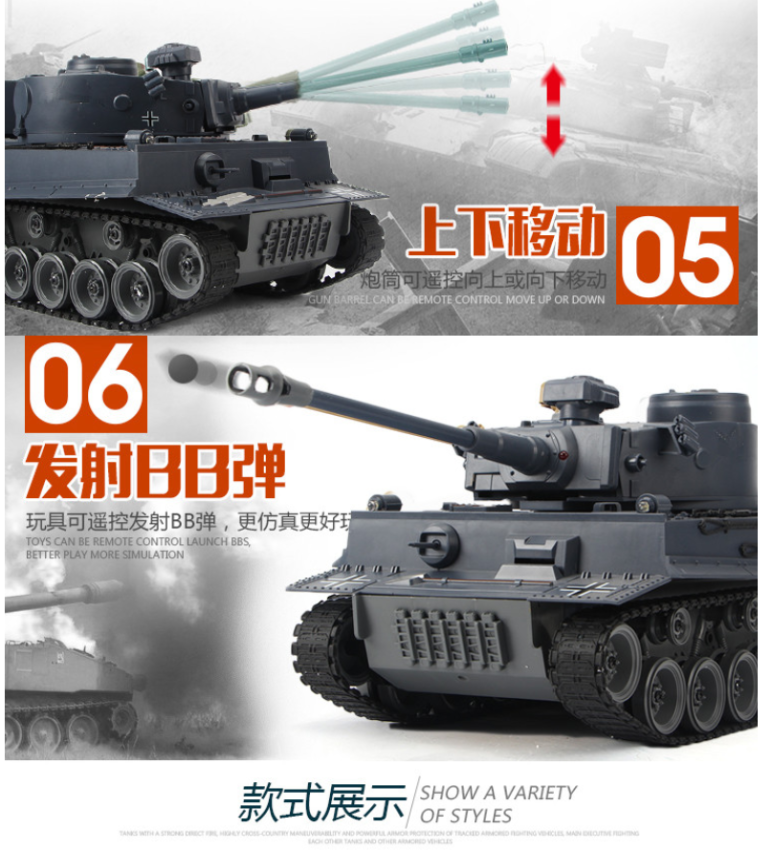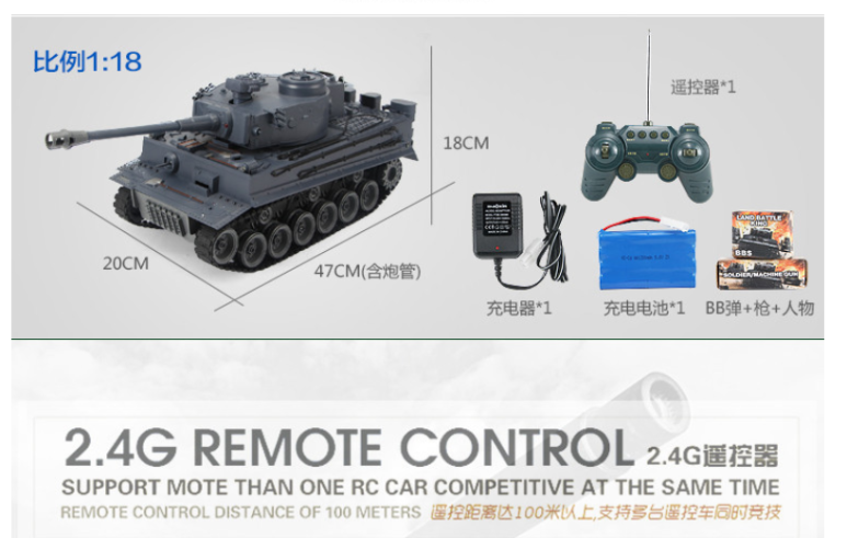 무선 조종 RC 탱크 비비탄 발사되는 원격제어 리모콘 컨트롤 47cm 대형 : 혼팜