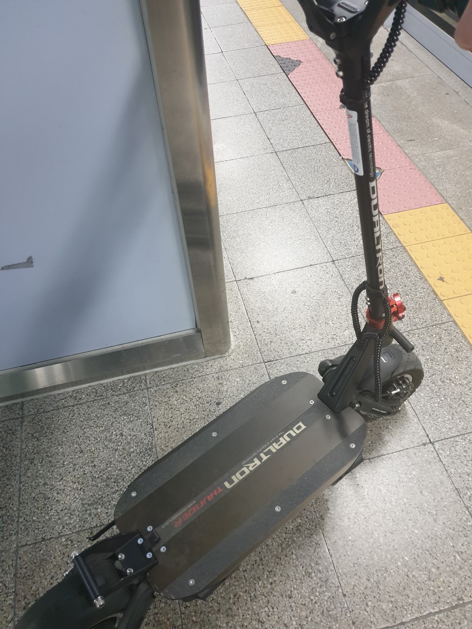 전동 퀵보드 끝판왕급 듀얼 트론!! 모터 두개에 80km도 나오는 하이엔드급을 구입했지만 동생 줘버렸다. 동생 타던 퀵보드는 고장나고 회사에서 이륜차는 주차가능하지만 아직도 퀵보드 류 기타 일인용 전동 탈것은 안된다는