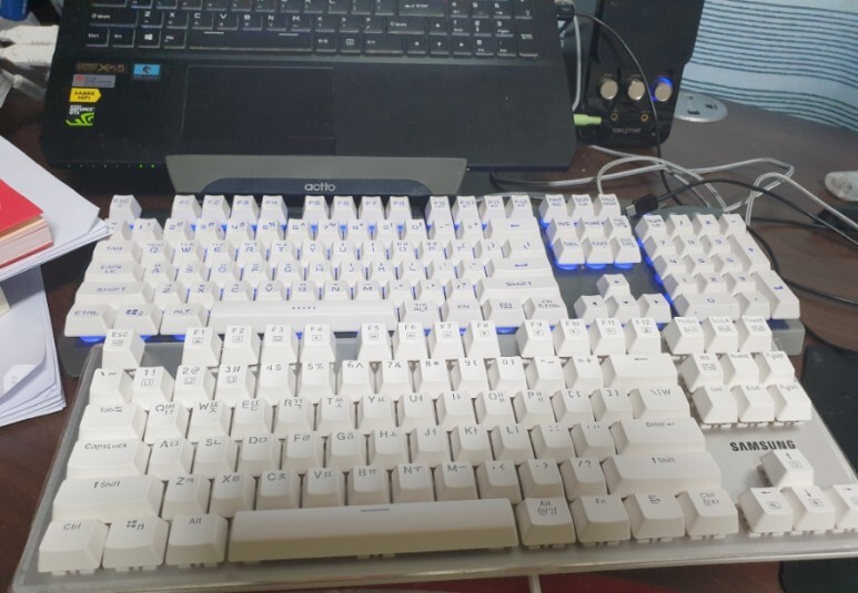 원래 저런 게임용 키보드를 사용했는데 손꾸락이 너무 아퍼서 한개 더 샀습니다. 키 압이 너무 세고 튀어나...