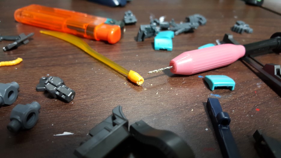 무기부품이 부러져서 컷팅 후 심박기 , 레진 등의 작업을 하고있습니다.