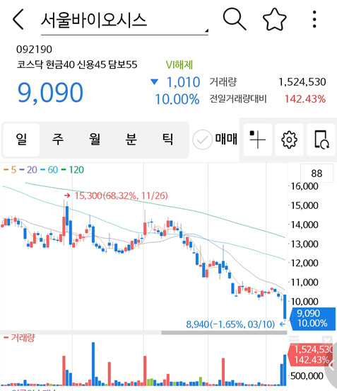 서울바이오시스는 블록딜 이슈로 바닥을 뚫어버리는군요