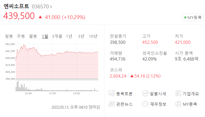 저도 근 2년을 사고 팔고 하며 나쁘지 않은 수익을 주던 종목인데 갑자기 엔씨소프트와 나란하게