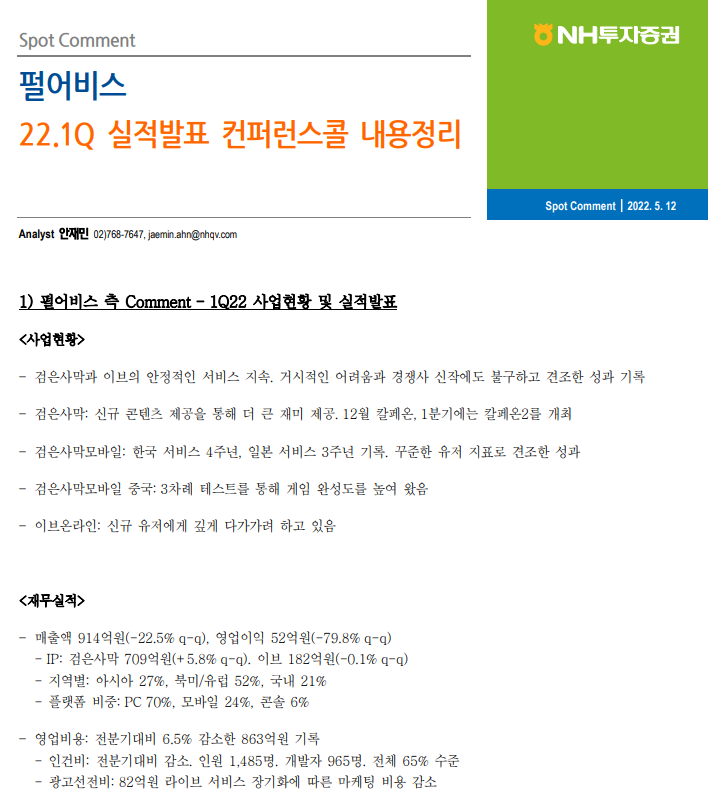실적과 중국발 흥행의 한계를 보여준 펄어비스