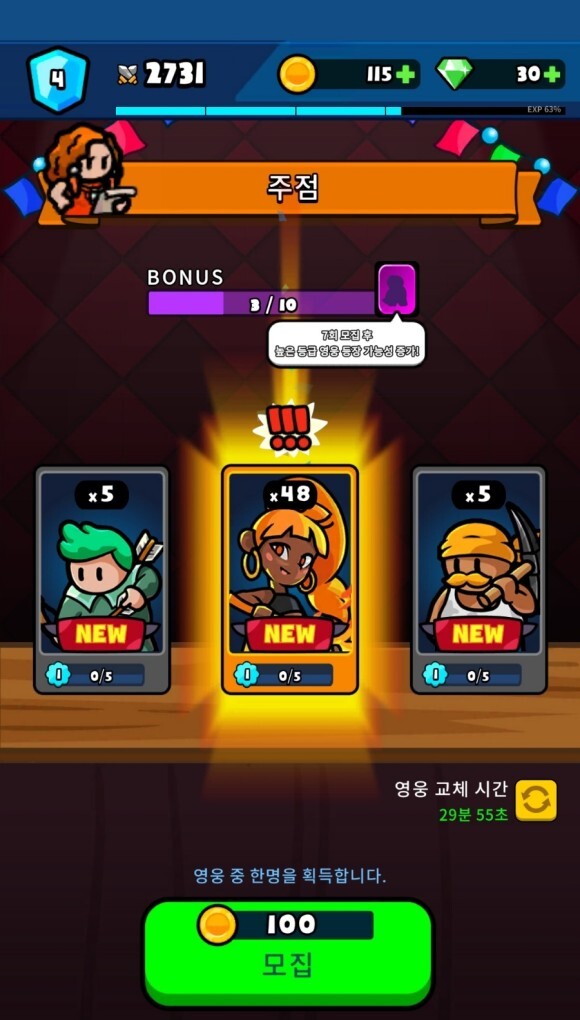 초반에 웬일로 고급영웅들을 셋이나줘서