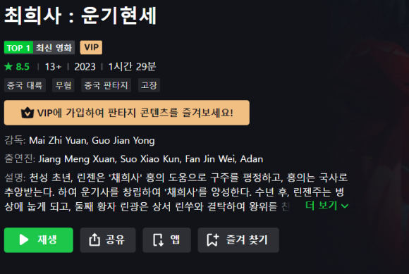 아이치이 평점으로도 8.5면 높은 편은 아닙니다.