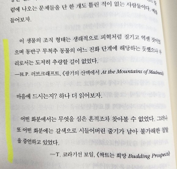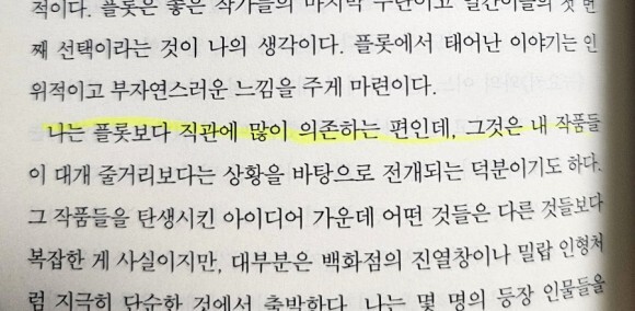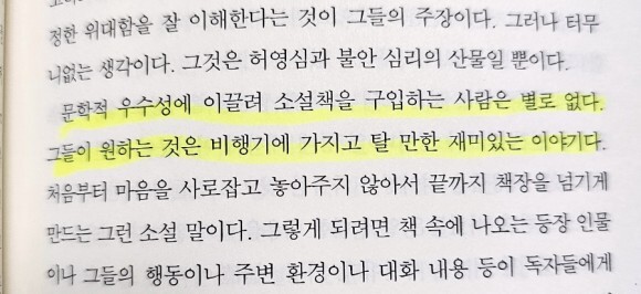 이라는 표현은 굉장히 와닿는 게 순수문학임을 강조하거나 필력을 자랑하려고 쓴거 같은 소설들은 오히려 지루하고 쉽게 잊혀집니다.