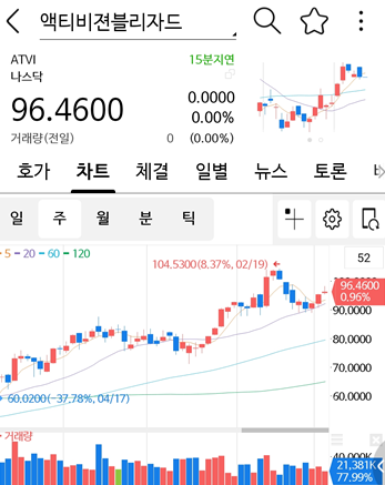 80불근처에서 늘 사고 팔며 했던 블리자드.....앞으로 나올 게임도 많이 남았으니 오늘 밤 한번 더 매수 해봐도 되겠군요