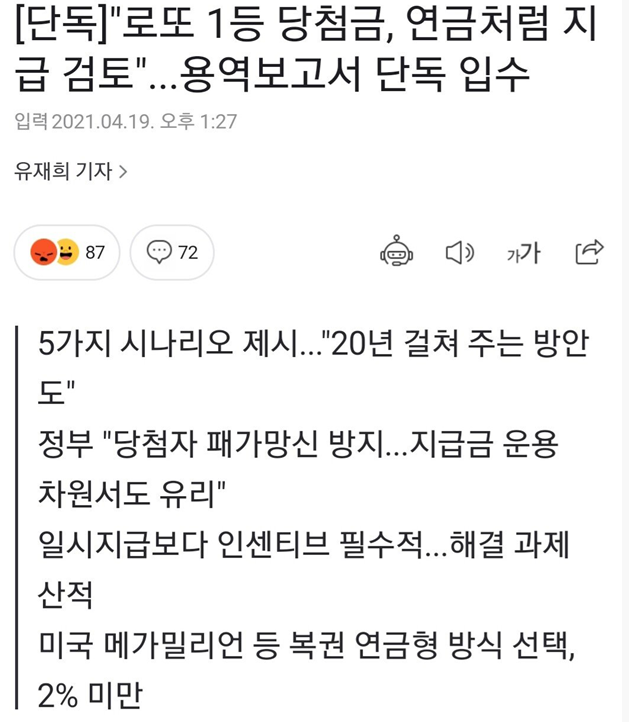 - 로또도 이제 일시불로 주지 않고 나눠 주는 것을 검토