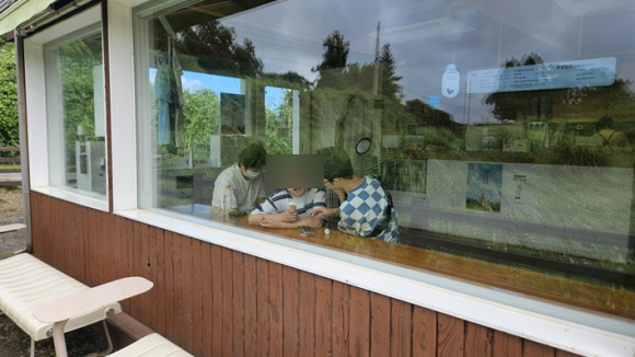 귀여운 우유갑 모양 좌석과 포토존이 마련되어 있음