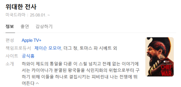 제목: 위대한 전사 (원제: Chief of War)