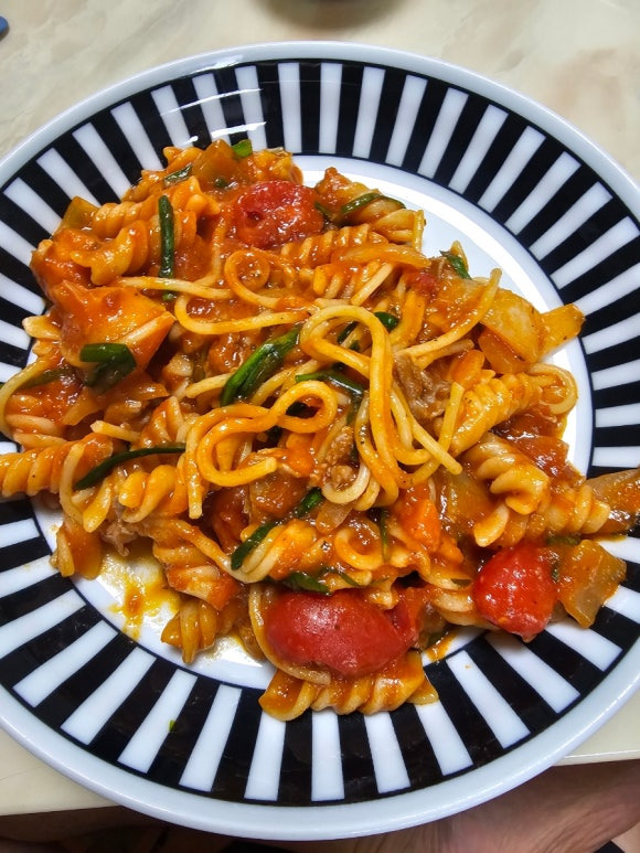 🌶 아라비아따(Arrabbiata) 소스는 이탈리아어로 ‘화난’이라는 뜻을 가진, 매콤한 토마토 파스타 소스예요. 마늘과 페페론치노(건고추)를 올리브유에 볶아 매운 향을 내고, 토마토소스를 넣어 끓이는 것이 기본입니다.