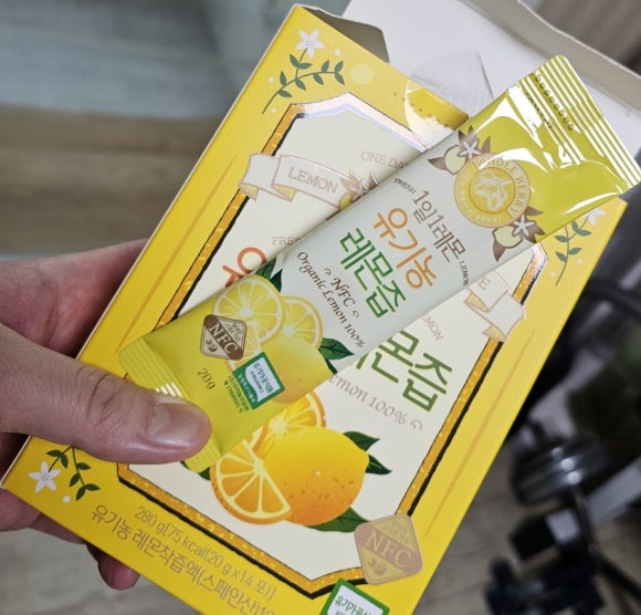 유기농레몬즙이라는 제품 사서 먹어보고 있습니다.