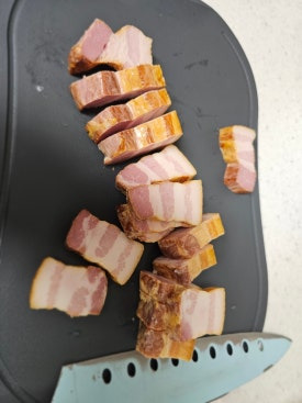 이렇게 길죽하게 훈제되어있구요 잘라서 반씩
