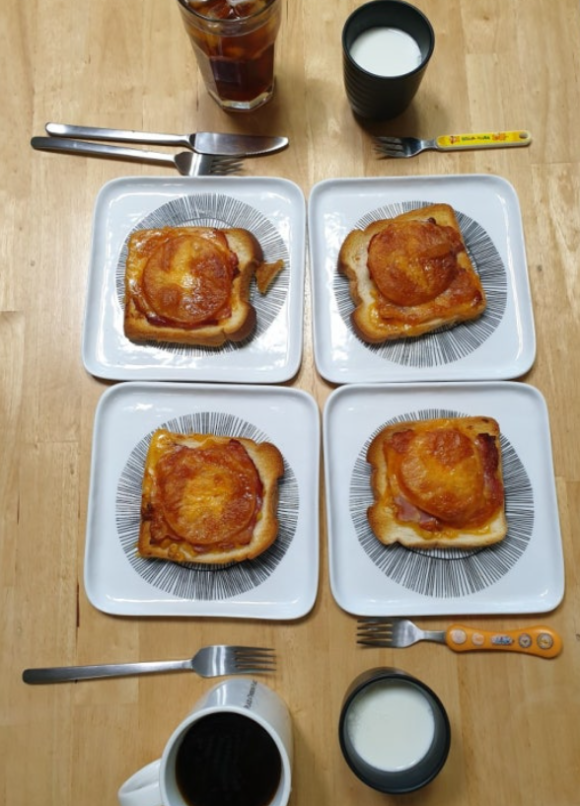 토스트해서 치즈에 베이컨 토마토 얇게 얹어 먹는거