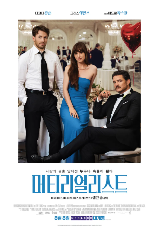 《머티리얼리스트》(영어: Materialists)는 2025년 개봉한 미국의 로맨스 영화로, 셀린 송이 감독과 각본을 맡았습니다. 다코타 존슨, 크리스 에반스, 조이 윈터스, 마린 아일랜드, 루이자 제이컵슨, 페드로 파스칼이 출연합니다.
