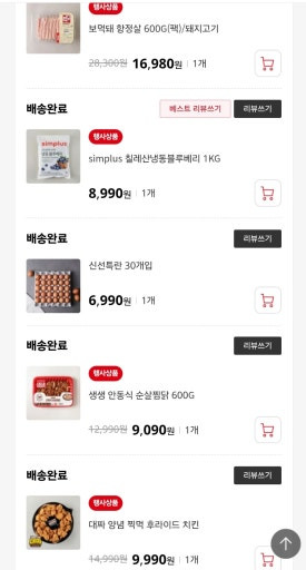 쿠폰도 종종 나오고 할인이 많기 때문에 홈플러스에주로 시킵니다.