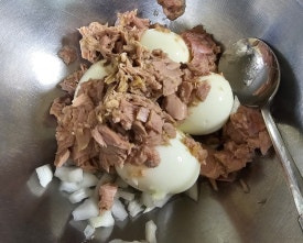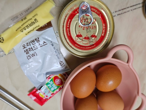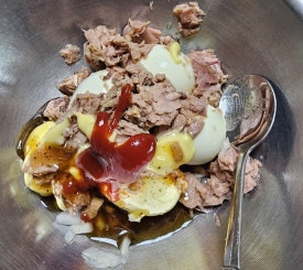 삶은계란 4개에 참치 한캔