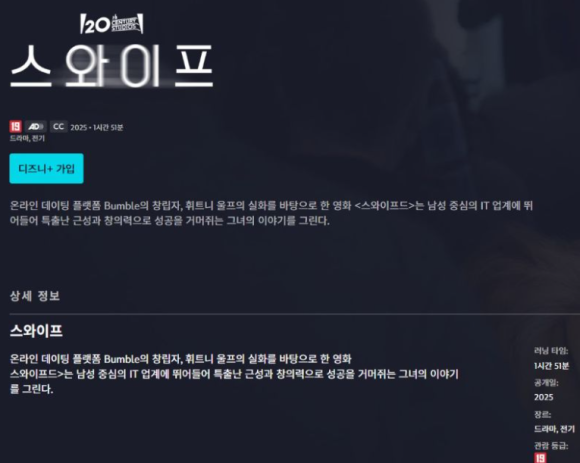 ulu에서 공개된 〈Swiped〉(2025)는 실존 인물의 이야기를 바탕으로 한 전기 드라마로, 데이팅 앱 Bumble의 창립자이자 CEO였던 휘트니 울프 허드(Whitney Wolfe Herd)의 도전과 성공을 그립니다