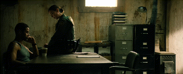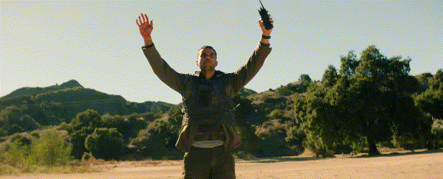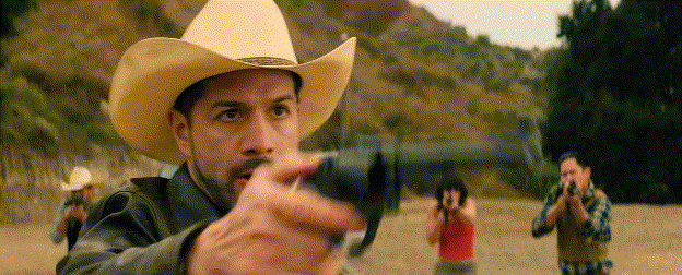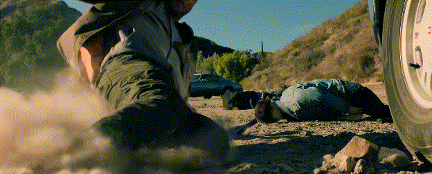 카르텔 조직원들이 쓰러지고, 두 요원은 차량 뒤에 몸을 숨긴 채 사방에서 날아드는 탄환 속에 갇히게 됩니다.