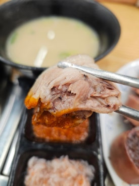 국물은 아주 맑은 스탈은 아니고 쿰쿰한 내 나는 옛날식 돼지국밥 스타일입니다.