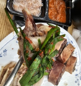 새우젓에 한 개 마늘 간거와 소금에 한점 이렇게 먹었는 데요