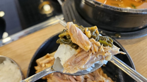 밥에 국물적셔서 씨레기랑 고기넣고 한입~ 캬~~~