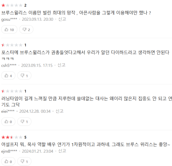 사실 브루스 배우님이 치매가 오셔서 인지기능이 많이 떨어지는 시기라