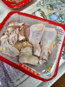 일단 치킨을 구합니다. 600g이 5천원 안하는 가격이네