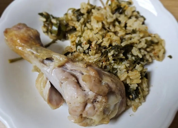 오늘은 울릉도 나물밥을 해서 밥이랑 치킨을 같이 해서 먹었습니다.