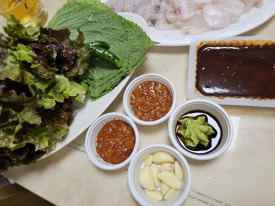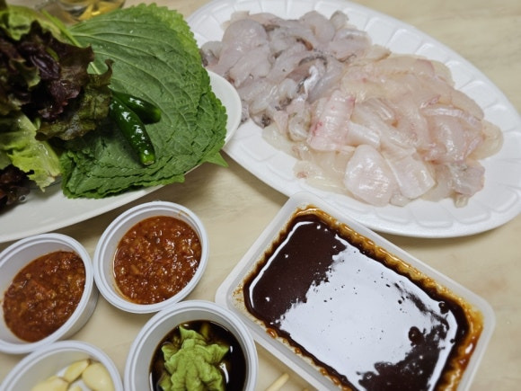 쌈으로 먹고 간장에 먹고 와사비에 먹고....