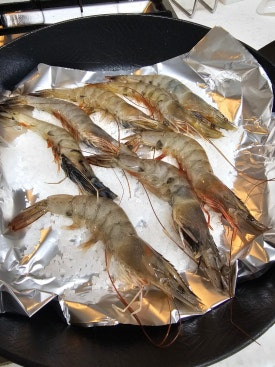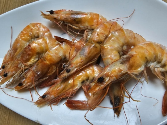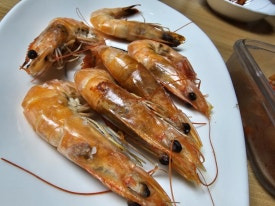 저녁에 어른들 술안주로는 남은 새우로 새우소금구이했습니다.