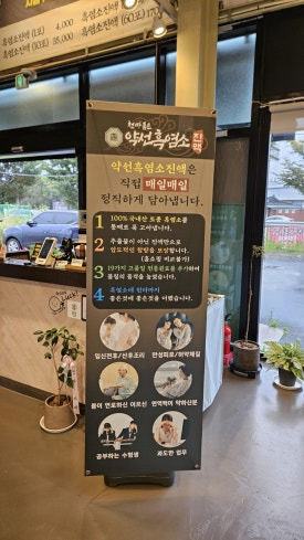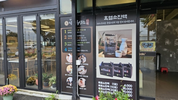 직접 흑염소진액을 짜시는지 입구에 이렇게 되어있더라구요.