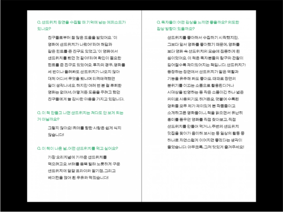 영화를 리뷰하면서 샌드위치가 나오는 것 처럼 실제 샌드위치 지분은 적어서