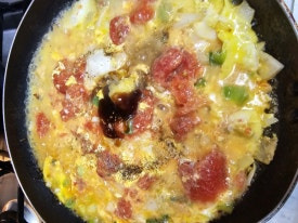 기본 재료 : 토마토 2개, 양파 1/4개, 대파 1/4대, 마늘 2톨, 달걀 3개, 식용유, 소금, 물전분(물+전분) 1작은술, 양념(간장 1작은술, 굴소스 1/2큰술, 설탕 1/2큰술, 후춧가루 약간)