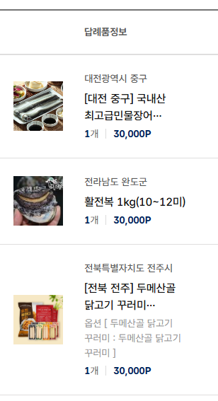 답례품 포인트 받아서 저는 맛난 지역 특산품 먹고