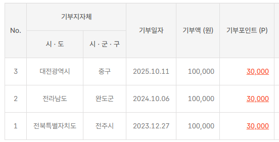 기부처: 본인 주소지를 제외한 전국 모든 지자체