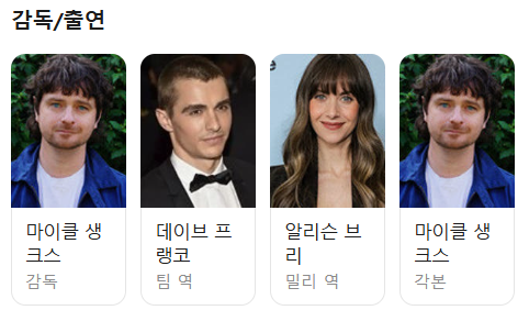 실제 부부 캐스팅한 작품으로 데이브 프랭코와 앨리슨 브리의 리얼한 케미가 영화의 몰입도를 높이는 데요 신체가 붙었다 떨어지는 장면을 통해 사랑과 집착의 경계를 시각적으로 표현합니다. 플라톤의 ‘인간은 원래 둘로 나뉘었고, 반쪽을 찾아 헤맨다’는 신화를 모티브로, 사랑의 본질을 탐구하는 데 신체가 붙는 다는 것은 정신적인 것을 연상케 하죠