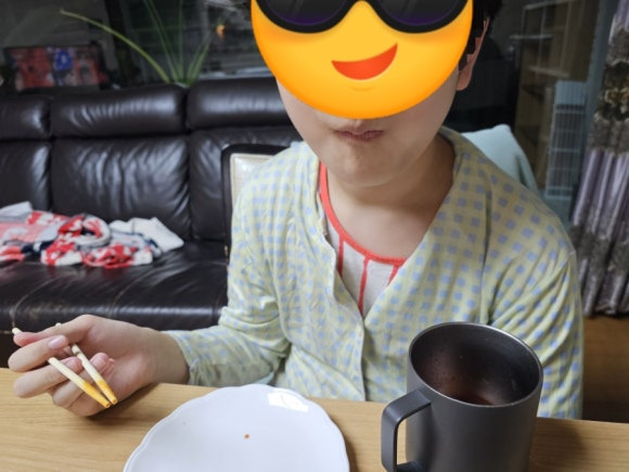아이들이 오물오물 씹어 맛있다라고 할 때