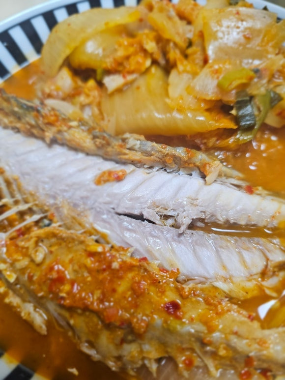 잘익은 김치에 조려진 고등어를 살을 쫘악발라먹으면