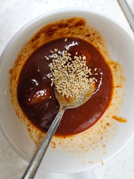 덜 맵게: 고추장 양을 줄이고 식초와 설탕을 조금 늘리세요.