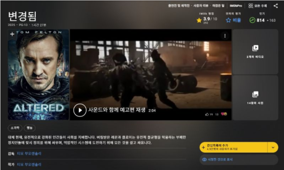 영화 Altered (2025)은 톰 펠튼 주연의 SF 액션 영화로, 유전자 강화가 일상화된 대체 현재를 배경으로 사회적 불평등과 저항을 그린 작품입니다. 감독은 Iron Sky로 알려진 티모 부오렌솔라이며, 미국에서는 2025년 11월 21일 개봉했습니다