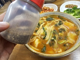 칼국수 먹다가 나중에는 숟가락으로 막 퍼먹어요