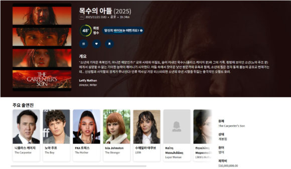 🎬 영화 <목수의 아들(The Carpenter's Son)>은 2025년에 공개된 초자연적 스릴러 작품으로, 롯피 네이선(Lotfy Nathan)이 각본과 연출을 맡았습니다.