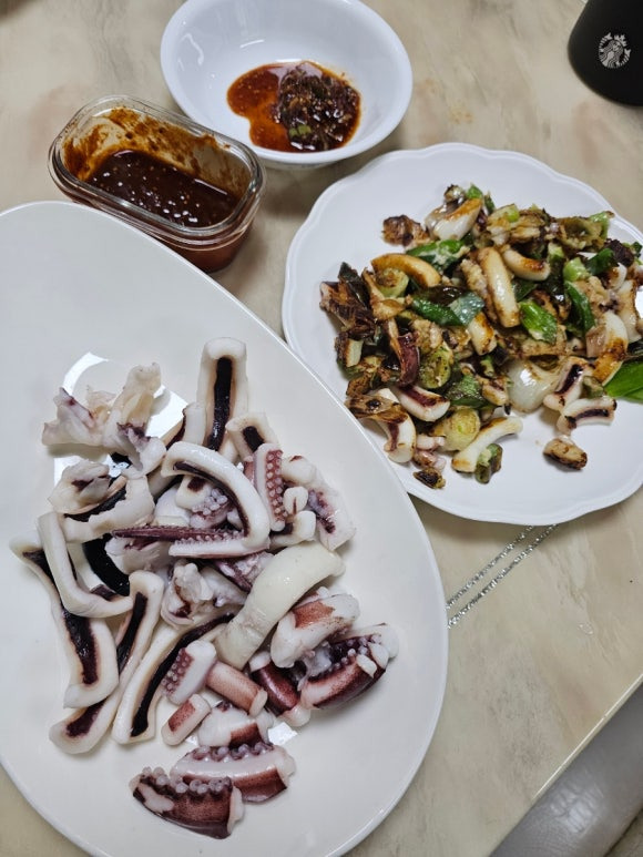 오징어 비싸지고 요새는 찬으로 거의 안나오는 오징어 숙회