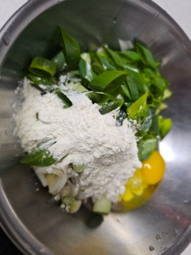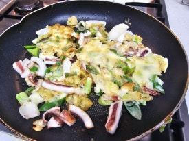 오늘도 반죽에 실패 그냥 오징어랑 파랑 따로 구운거 같지만