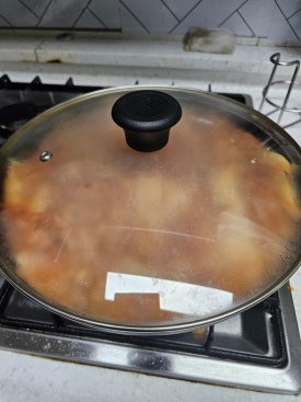 국물이 자박하게 졸아들면 모든 맛이 응축된 김치찜이 됩니다.