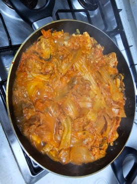 사실상 이게 요리 끝 김치 잘 잘라서 넣고 김치국물 부워주고 불 낮춰서 30분정도 끓여줍니다.