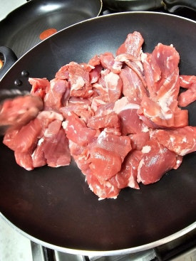 이 고기는 기름이 많이 나오지 않아 살짝 식용유 둘렀어요
