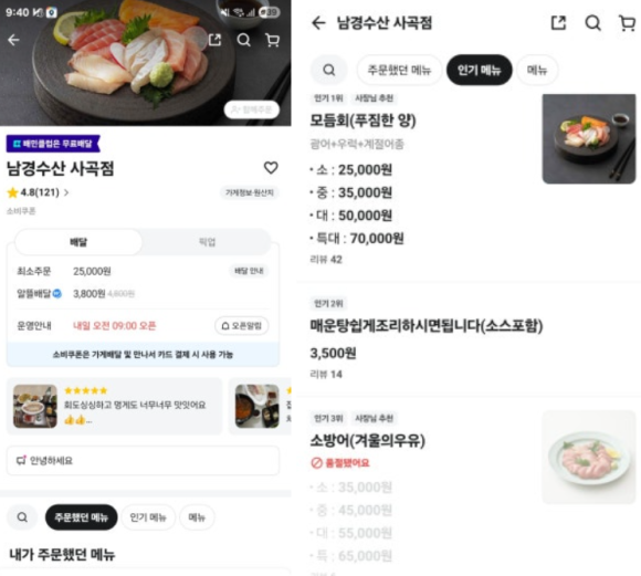 지난번 시켰을 때랑 비교
