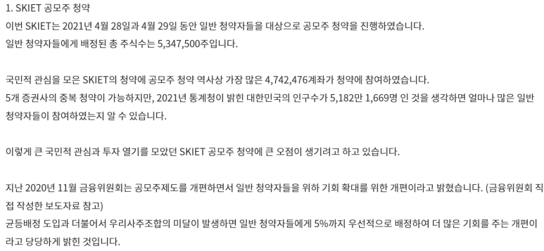 SKIET공모 관련 국민청원입니다. 우리사주 배정미달물량을 기관투자자가 독식하는 문제를 개선하고자 합니다.
